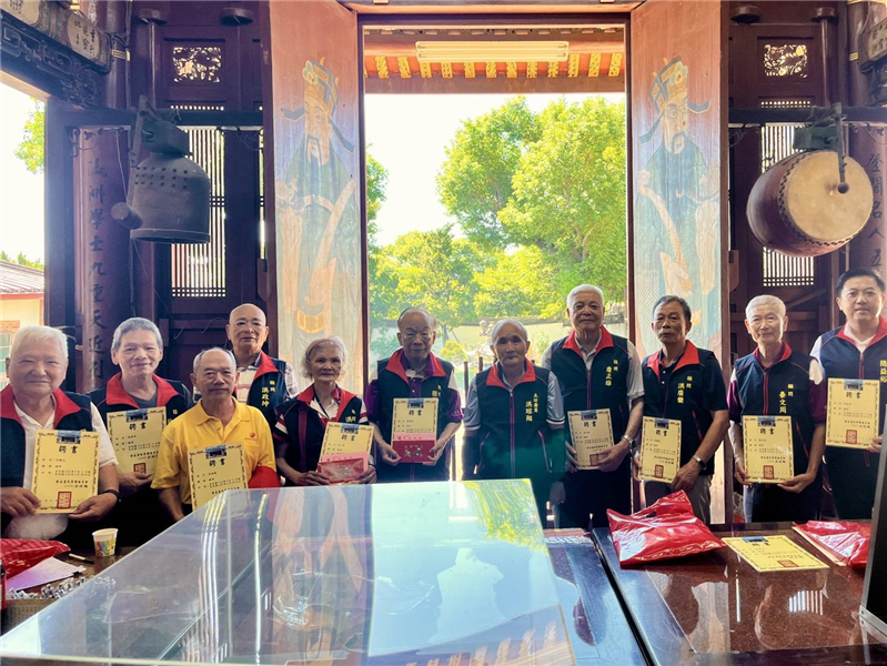 主任委員洪琮翔,今(9/21)在書院頒發「顧問」聘任證書,並發給委員、監事、顧問每人一套「繡名背心」,同時發放「中秋禮券」。